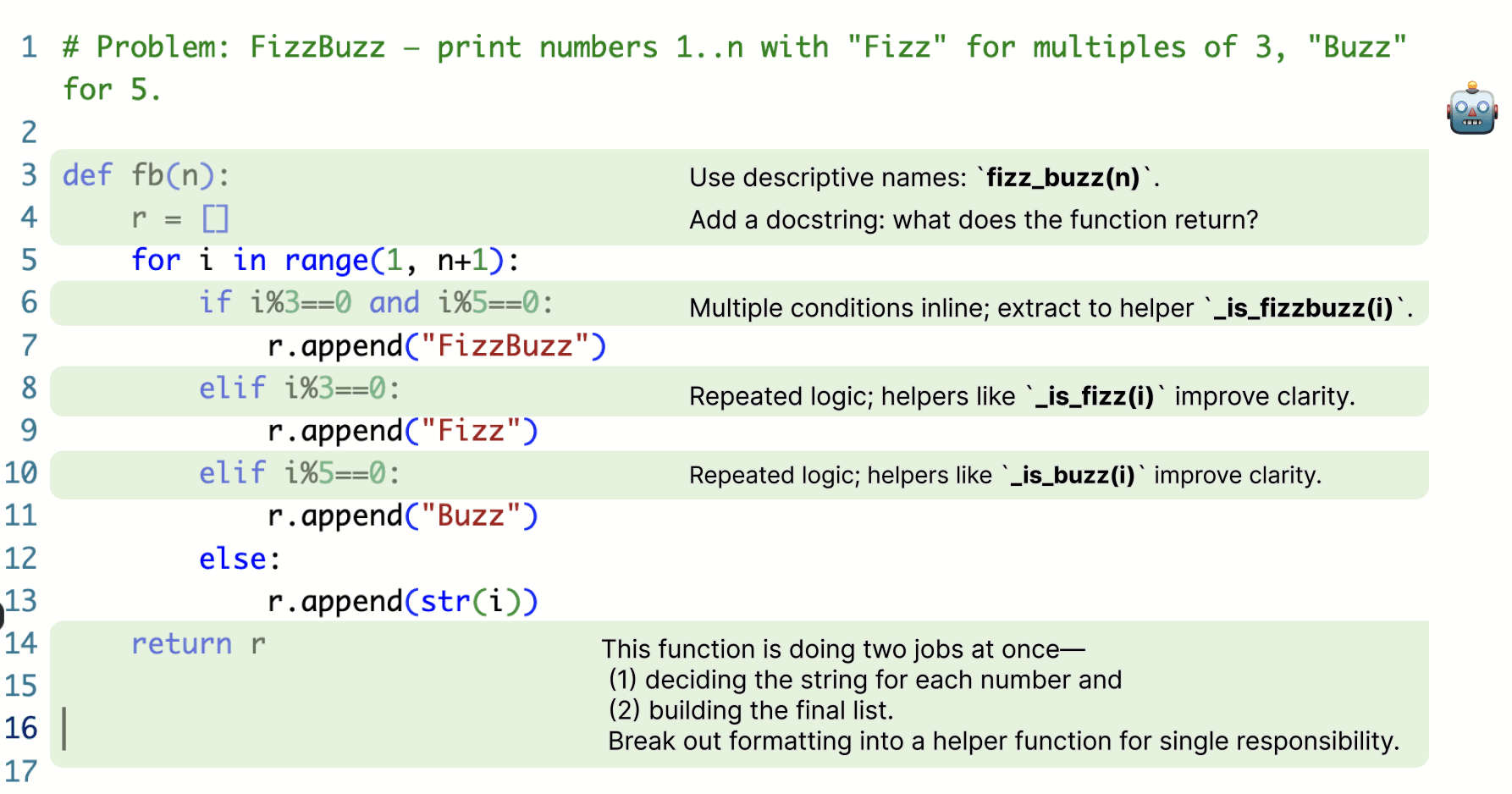 Getting the right answer isn’t enough—your code needs to be easy to follow and explain. Our platform trains you to separate logic into helpers, use clear names, and structure solutions the way great engineers do.