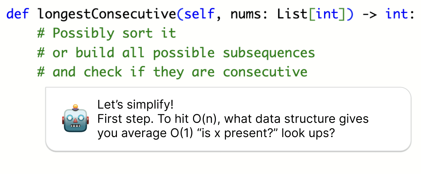 AI coach guides you toward clarity without giving away the answer. Learn to think and solve simply
