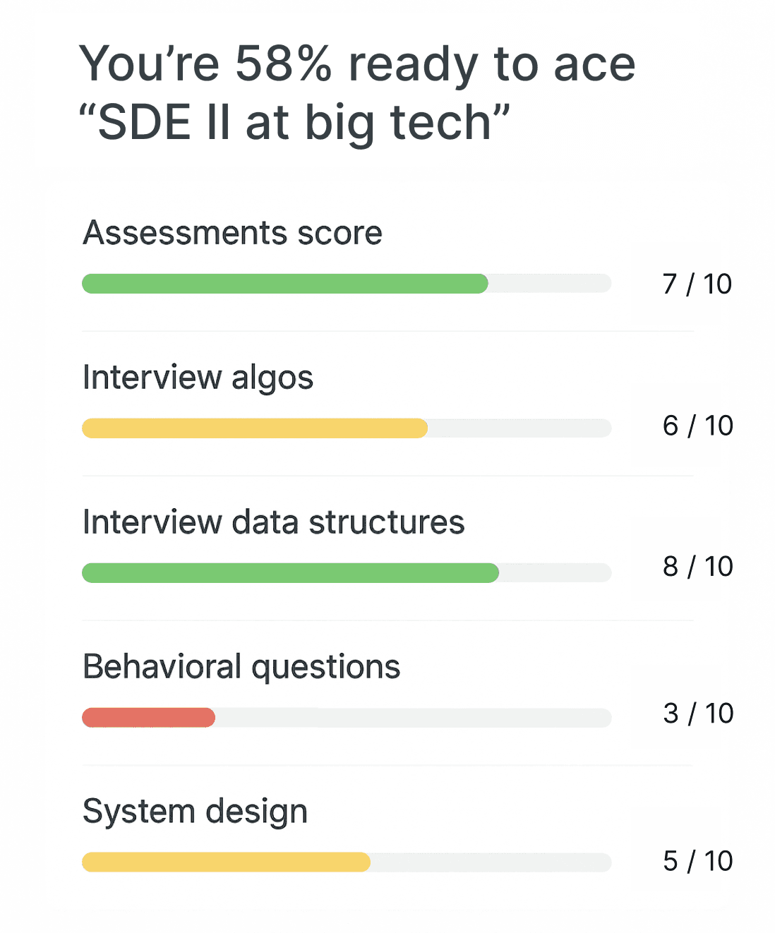 A path designed to build skills step by step, not overwhelm you. Track your interview readiness.